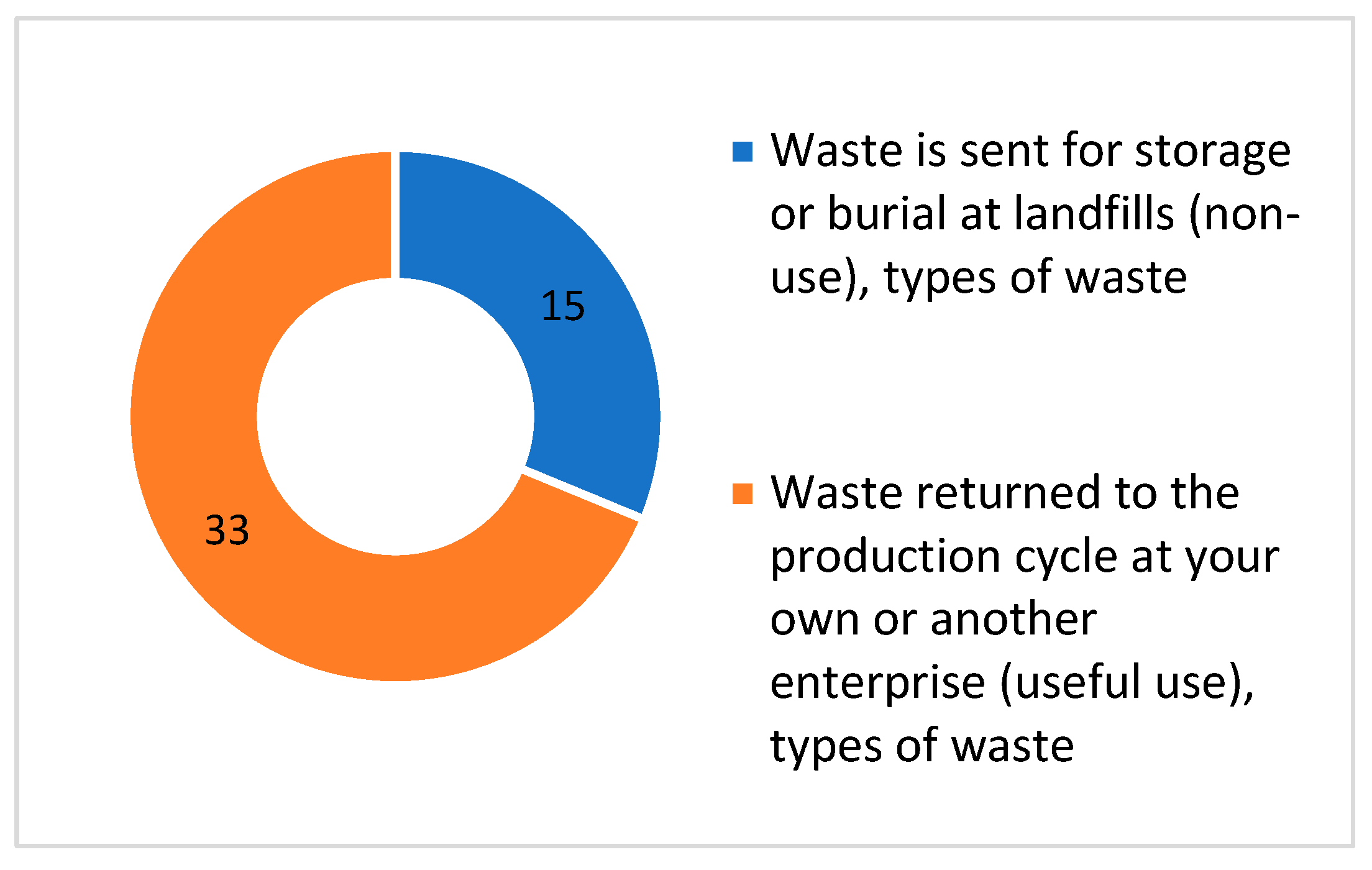 Researchers and practitioners of engineering and technology profile study the environmental sustainability of production from the position of the application of specific technologies, designs, and information systems. The developments are mostly focused on the creation of a closed production cycle based on new technologies and the use of secondary raw materials in homogeneous and related spheres of the economy and industry. The most frequent publications are devoted to the application of waste in the construction industry. For example, Ghazzawi S. and co-authors proposed the use of olive by-products as an environmentally friendly secondary raw material in the production of cement mortar [9], Indraratna B. and co-authors described the reuse of glass waste as a construction material for transportation infrastructure [10], and the possibility of using marble crumbs and powder from glass waste as binding materials in the production of mortar was studied by a scientific team led by Alemu M.Y. [11].