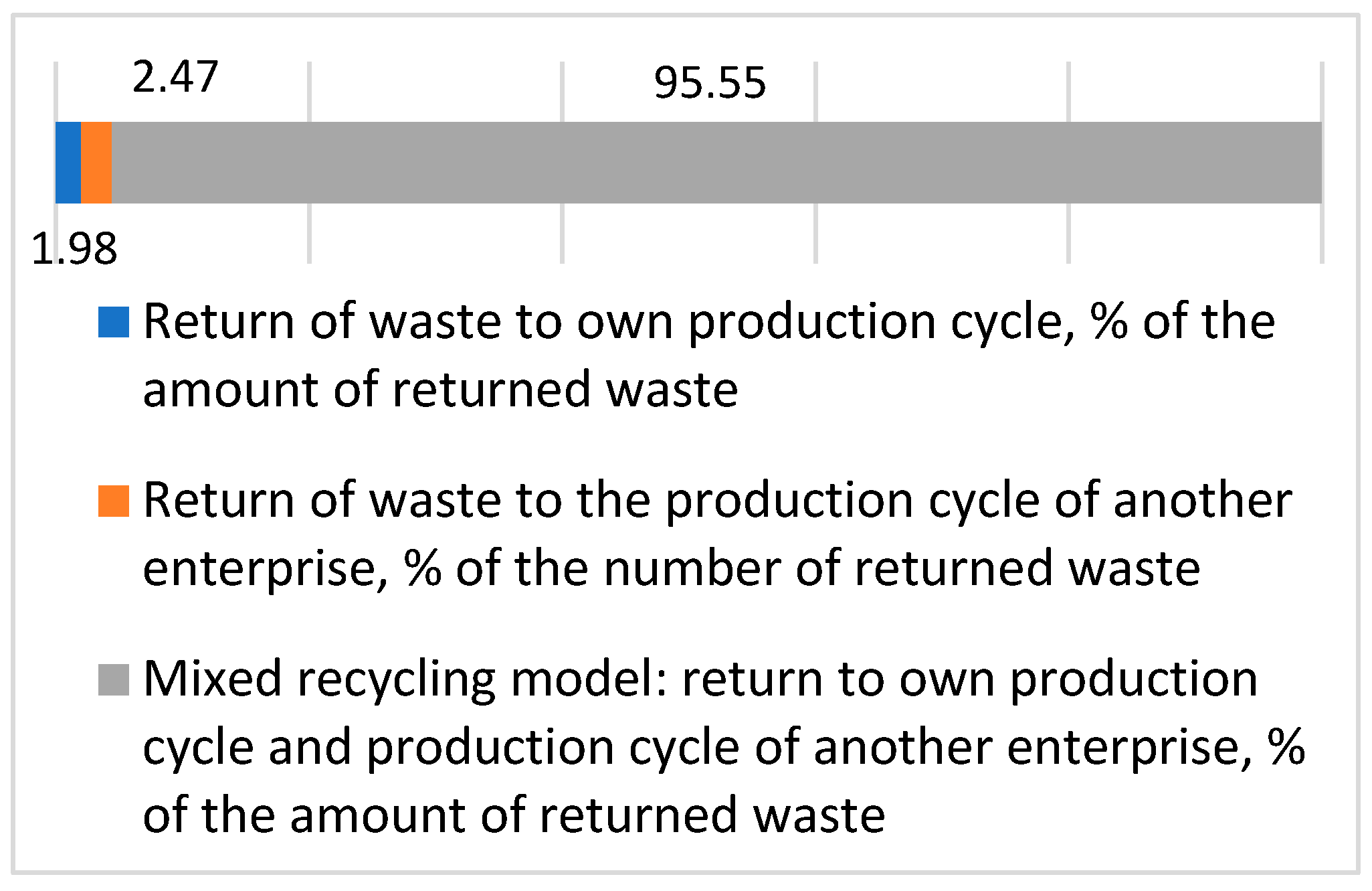 Name of Waste from the Production of Rubber Tires, Covers, and Other Rubber ProductsStructure of the Mixed Model of Waste Recycling, %Share of Waste Returned to Production, %