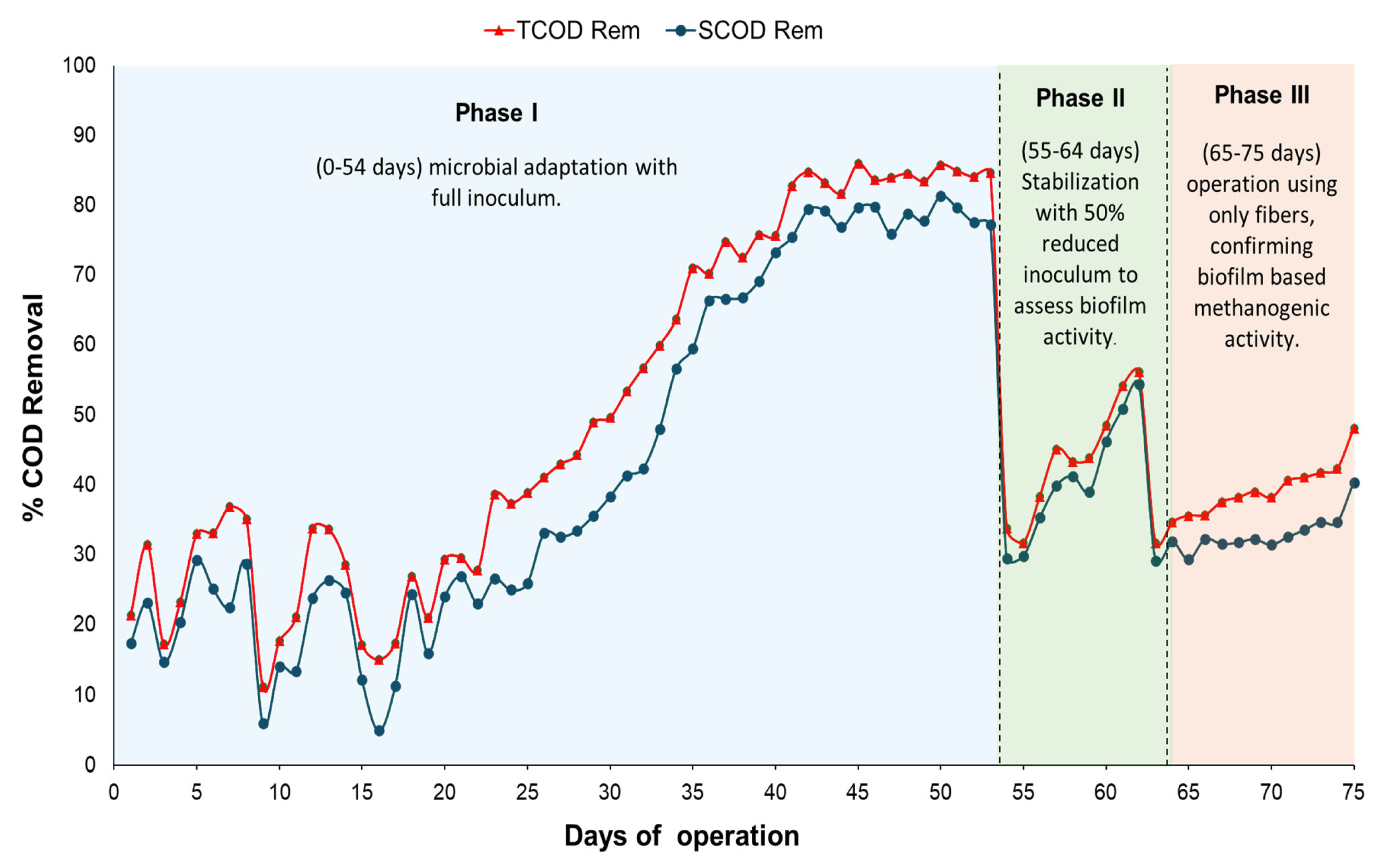 SCOD (g/L) | 27.89 ± 1.7 | 68 ± 1.3 | |