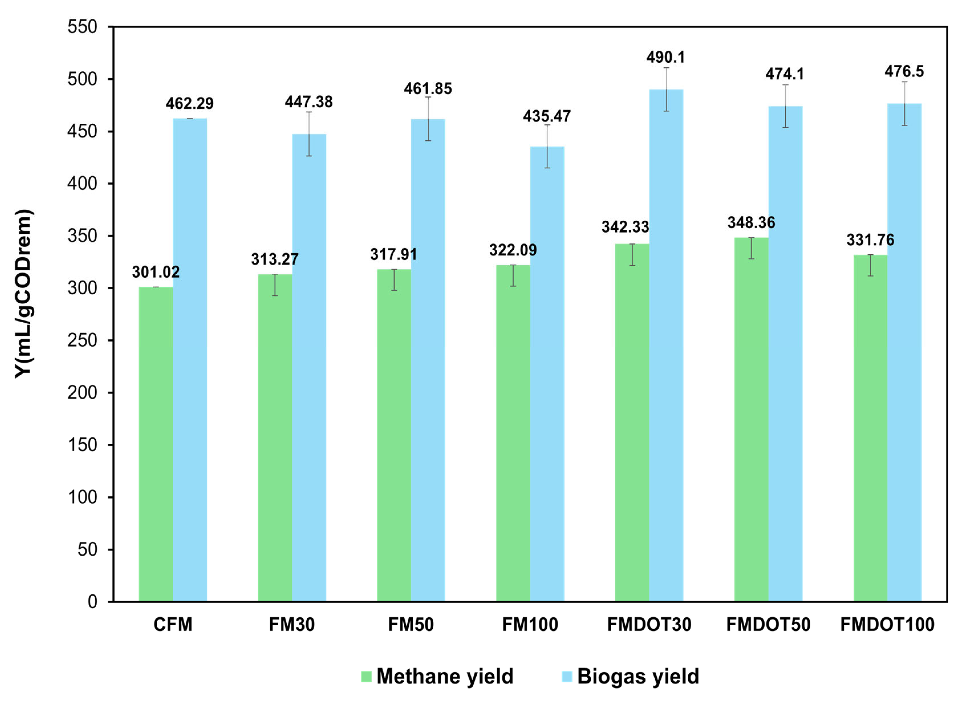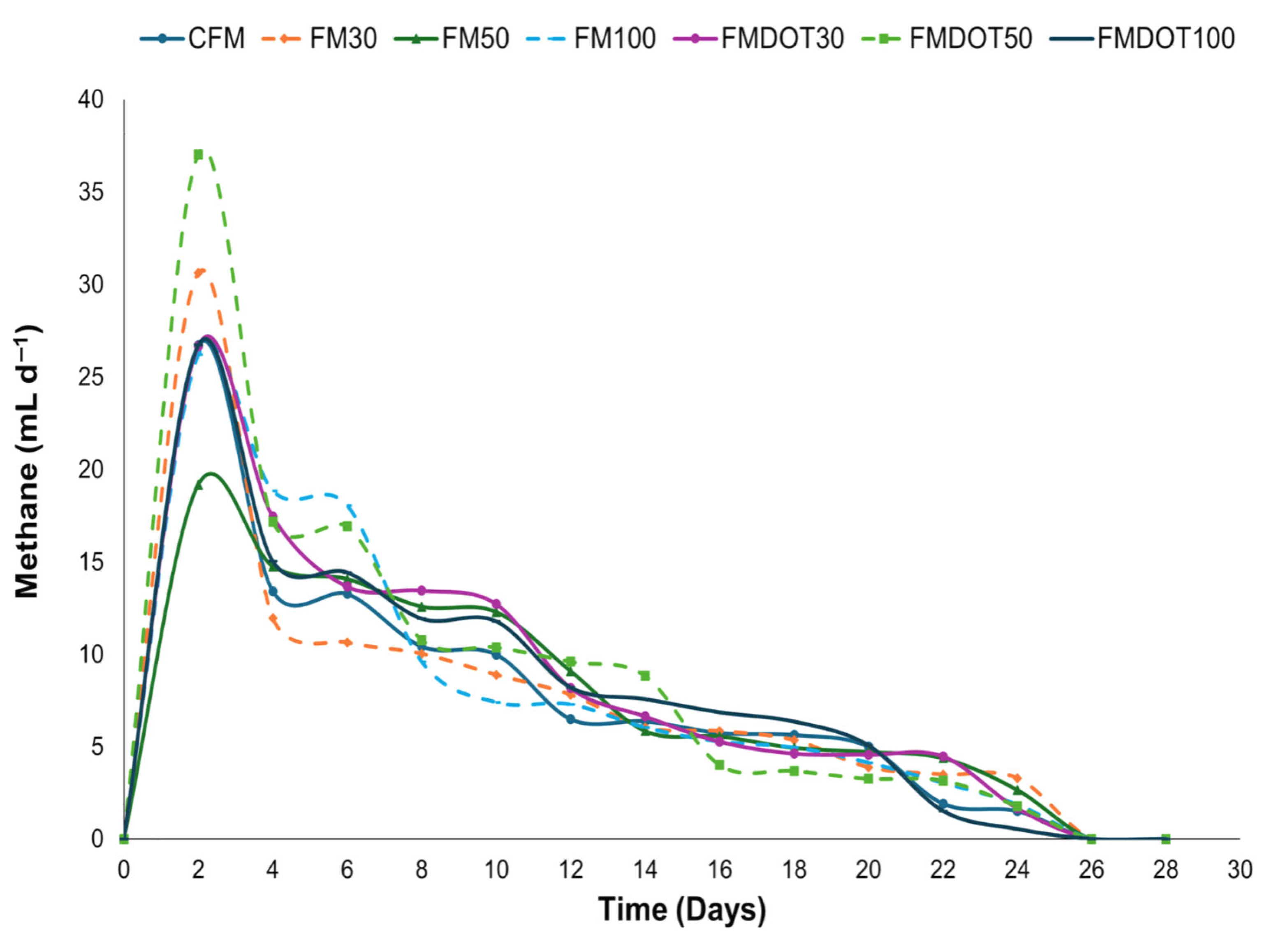 3.2.1. Effect of the Fiber Matrix on Biogas and Biomethane Production