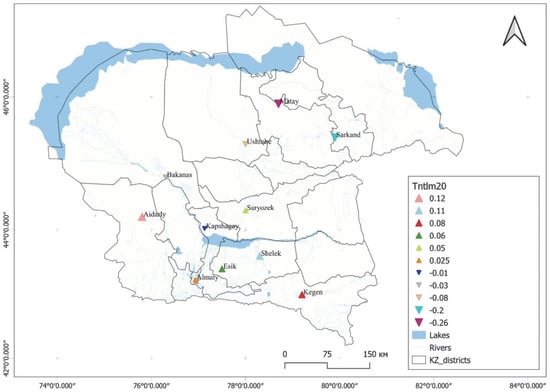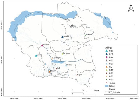 The assessment of bioclimatic conditions and meteorological parameters—such as air temperature and precipitation—helps identify optimal periods for various activities, considering regional and individual factors. Climatic and bioclimatic conditions are major factors influencing human health and daily activity. These factors are instrumental in determining the quality of life, the state of health, and the overall well-being of individuals. The analysis of meteorological parameters, including air temperature, humidity, and precipitation, facilitates the evaluation of climatic comfort across diverse regions. Bioclimatic studies are instrumental in identifying zones with favorable or unfavorable living conditions, a matter of particular importance in the planning of urban development and the formulation of landscaping and gardening measures. The study aims to assess the bioclimatic conditions prevailing in the Almaty region. It focuses on the Kapshagay Reservoir during the period 1990–2020, applying commonly used biometeorological indices. The software product ClimPACT2, which was developed for the analysis of extreme phenomena and weather changes, was utilized for the calculations. The primary meteorological indicators, specifically temperature and precipitation, were selected for the calculation of climatic indices. The observed spatial and temporal trends of climate change in the study area were analyzed. The findings indicated a substantial increase in the frequency of warm days and nights, concurrently accompanied by a decline in the occurrence of cold days and nights. The identified trends indicate a marked warming of the climate, which may have serious consequences for ecosystems and human activities. The analysis also revealed a significant increase in total annual precipitation in coastal zones.
