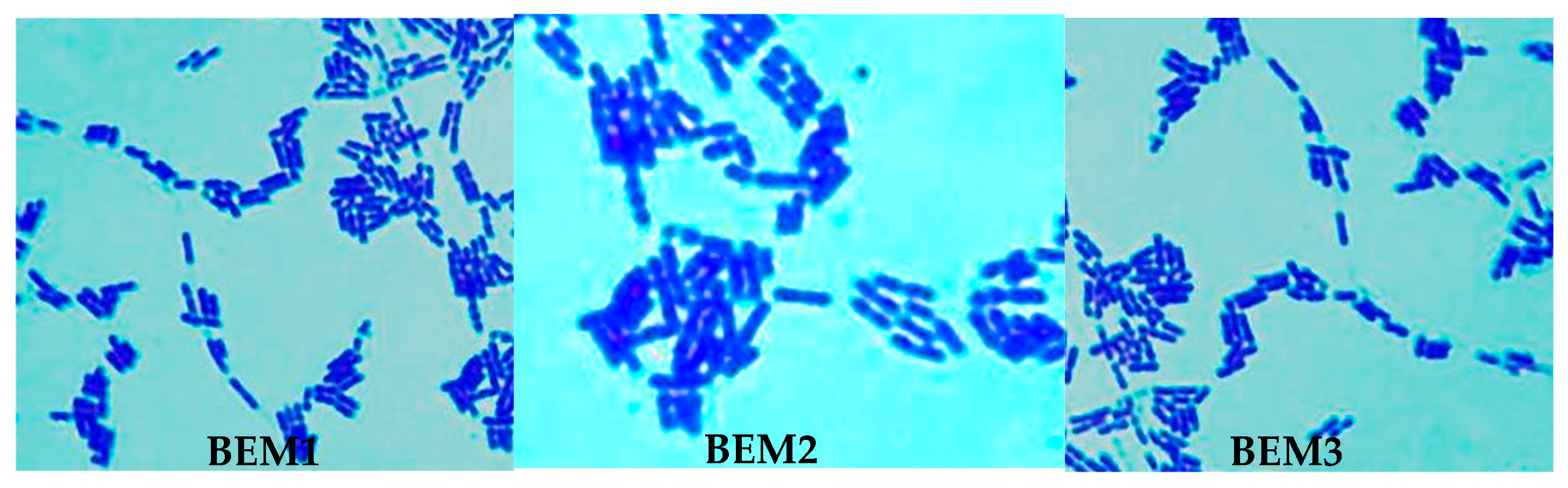 | BEM 2 | PV355830 | Bacillus amyloliquefaciens CP054415.1 | 99.86% | 100 |