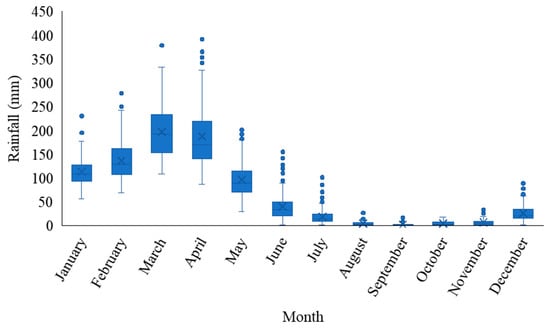 February, March, and April correspond to the rainy season in the semi-arid region of Brazil [38,59,60,61,62]. The greater rainfall during these three months is due to the Intertropical Convergence Zone (ITCZ) being positioned to the south, which favours increased rainfall in the region. However, during May, the ITCZ shifts to the northern hemisphere, resulting in less rainfall [63,64].