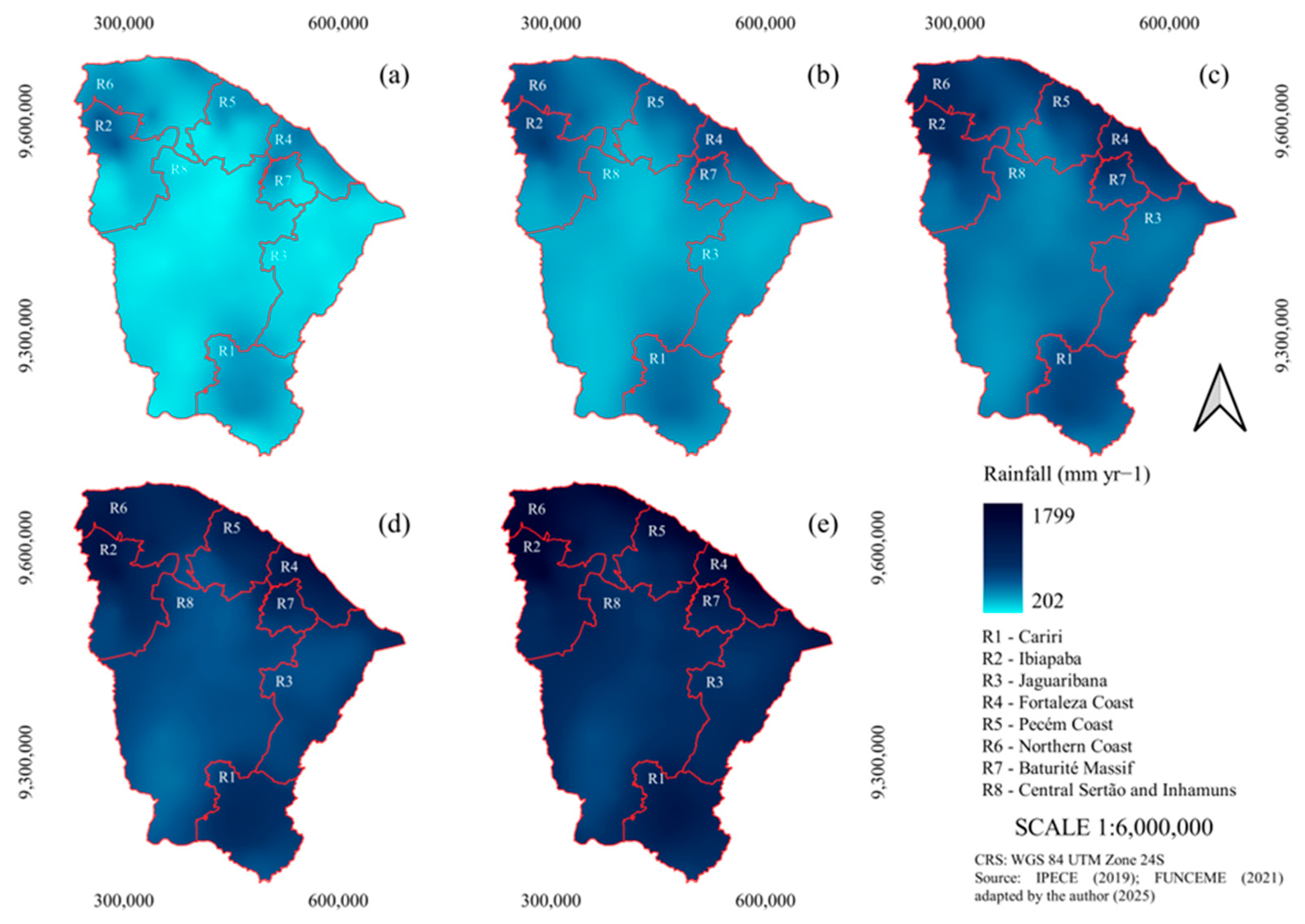 | R8—Central Sertão and Inhamuns | 112 b | 168 b | 270 b | 331 b | 288 bc |