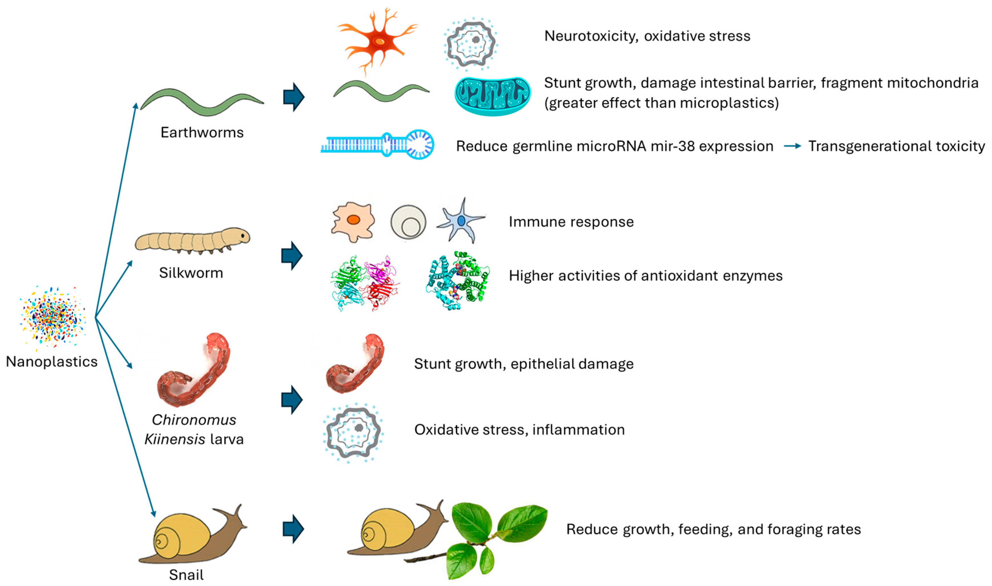 - Muhammad, A.; Zhou, X.; He, J.; Zhang, N.; Shen, X.; Sun, C.; Yan, B.; Shao, Y. Toxic effects of acute exposure to polystyrene microplastics and nanoplastics on the model insect, silkworm Bombyx mori. Environ. Pollut. 2021, 285, 117255. [Google Scholar] [CrossRef]