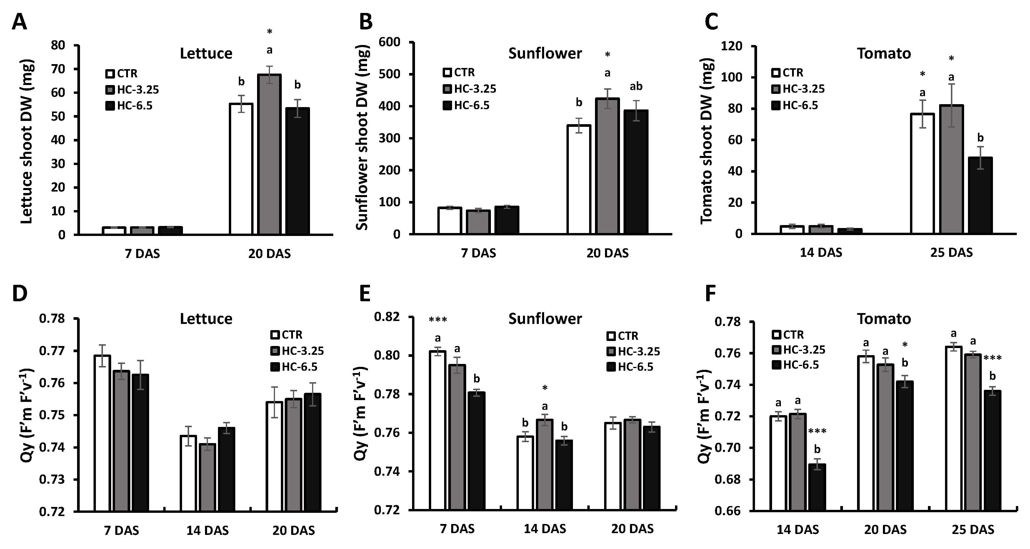 | Sunflower | CTR | 77.5 ± 2.50 | 3.57 ± 0.17 b | 0.28 ± 0.01 a | 3.02 ± 0.18 b | 0.51 ± 0.13 a | 1.21 ± 0.10 b | 609 ± 27.6 ab |