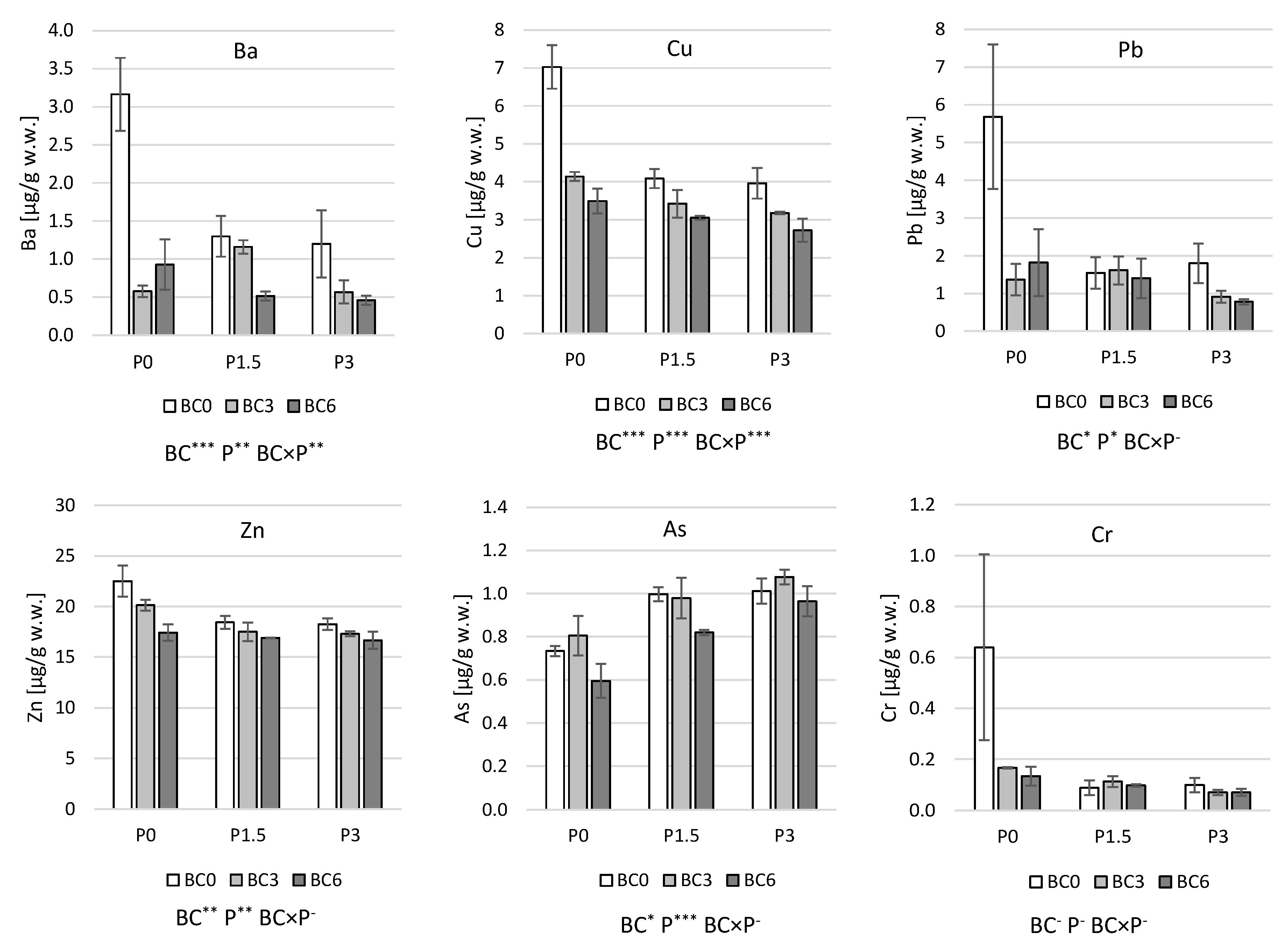 - Peng, X.; Deng, Y.; Peng, Y.; Yue, K. Effects of Biochar Addition on Toxic Element Concentrations in Plants: A Meta-Analysis. Sci. Total Environ. 2018, 616–617, 970–977. [Google Scholar] [CrossRef] [PubMed]