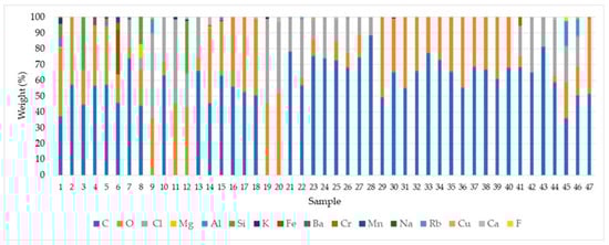 The chemical composition of the 47 samples analyzed, expressed as the percentage by weight of each element detected, is shown graphically in Figure 3.