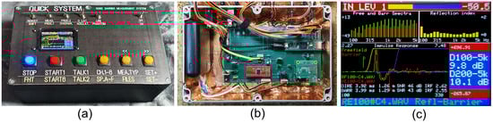 - The measurement and processing unit is visible in Figure 1. It works with a normal 5 V power bank; no other external accessories are required. With it, the Sound Reflection Index and Sound Insulation Index (with the new microphone positions) can be measured and processed instantly in the field. The measurement signal used is MLS, more suitable than ESS for measurements in roadside conditions [,,,,,,,,,,]; it is 256 k samples long, generated, and sampled at 44.1 kHz, 16 bits. The Quick System takes a single measurement, while the Adrienne system (with the same sampling settings) takes four averages. More information and specifications on the system can be found in [].