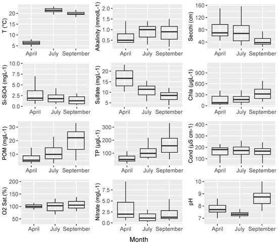 - Ivanova, A.P.; Vrba, J.; Potužák, J.; Regenda, J.; Strunecký, O. Seasonal Development of Phytoplankton in South Bohemian Fishponds (Czechia). Water 2022, 14, 1979. [Google Scholar] [CrossRef]
