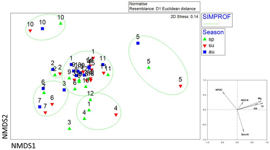 - Komárková, J.; Komárek, O.; Hejzlar, J. Evaluation of the long term monitoring of phytoplankton assemblages in a canyon-shape reservoir using multivariate statistical methods. Hydrobiologia 2003, 504, 143–157. [Google Scholar] [CrossRef]