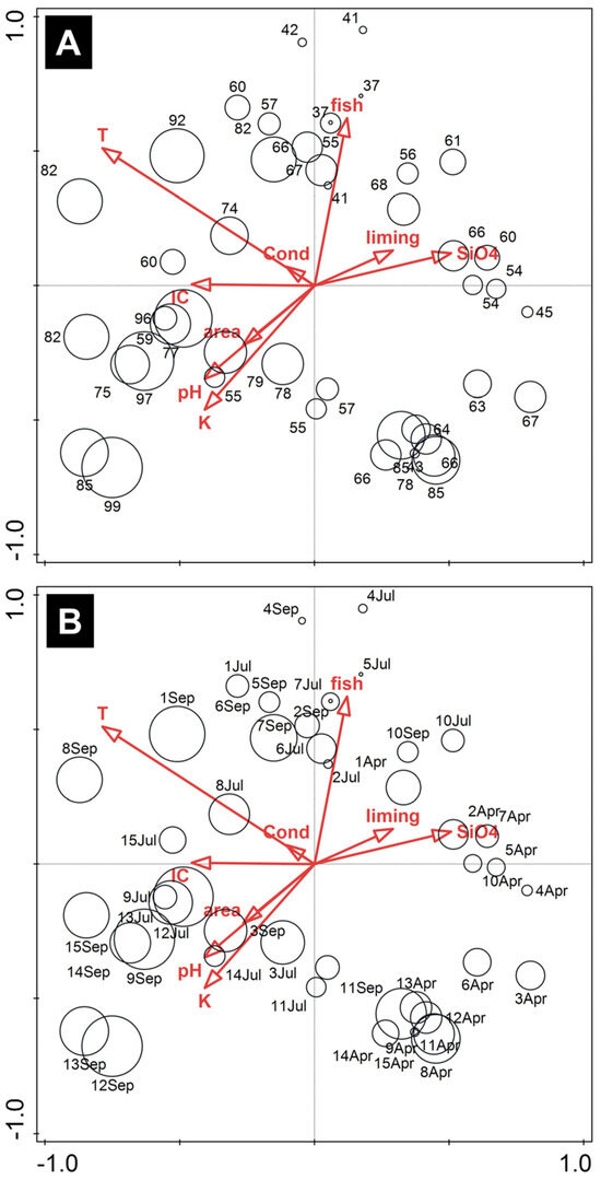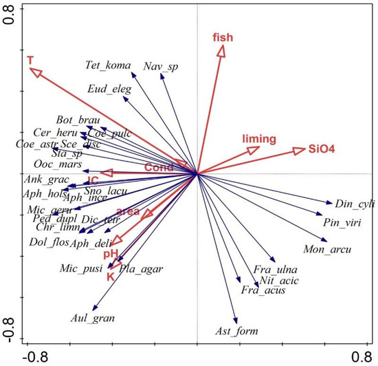 - Radojičić, M.; Kopp, R.; Müllerová, B.; Šorf, M. The Effect of Fish Production and Environmental Factors on Phytoplankton in Hypertrophic Fishponds. Acta Univ. Agric. Silvic. Mendel. Brun. 2022, 70, 397–406. [Google Scholar] [CrossRef]