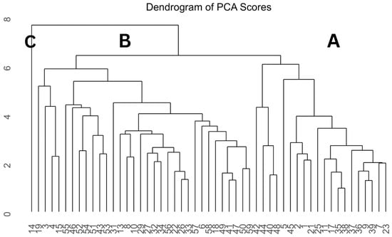 3.4. Hierarchical Cluster Analysis Based on PCA Scores