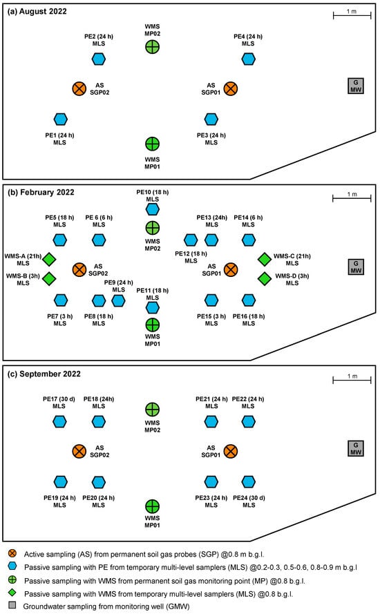- SIREM Instructions for Soil Gas Sampling with WMS-LUTM Samplers. 2016. Available online: https://www.siremlab.com/wp-content/uploads/2021/02/WMS-SOP-passive-soil-gas-sampling.pdf (accessed on 24 April 2025).