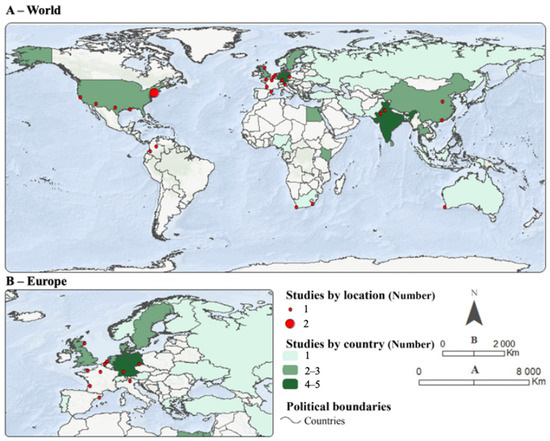 As noted by the main authors of these studies, there is a marked predominance of studies and academic institutions located in the countries of the Global North. There is a significant concentration of the application of transitions in three specific areas: Northern Europe (e.g., Germany, Denmark, Norway, and The Netherlands), North America (United States), and South and Southeast Asia (e.g., India, China, and Thailand).