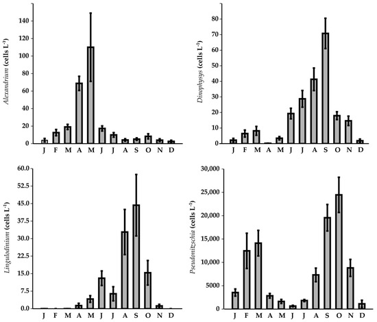 - Zingone, A.; Escalera, L.; Aligizaki, K.; Fernández-Tejedor, M.; Ismael, A.; Montresor, M.; Mozetič, P.; Taş, S.; Totti, C. Toxic Marine Microalgae and Noxious Blooms in the Mediterranean Sea: A Contribution to the Global HAB Status Report. Harmful Algae 2021, 102, 101843. [Google Scholar] [CrossRef]