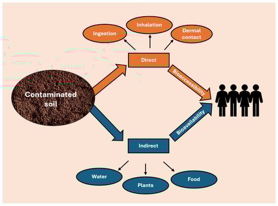 Human exposure to soil contaminants occurs through both direct pathways, including soil ingestion, inhalation, and dermal contact [15] and indirect pathways, such as food chain contamination (via plant uptake or groundwater leaching). It is estimated that over nine million human deaths are attributable to environmental pollution each year [17].