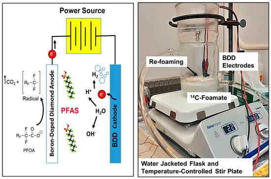 - Tasca, A.L.; Uwayezu, J.N.; Carabante, I.; Kumpiene, J. Electrochemical remediation of PFAS by Boron-Doped Diamond electrodes: A review. J. Environ. Chem. Eng. 2025, 13, 117044. [Google Scholar] [CrossRef]