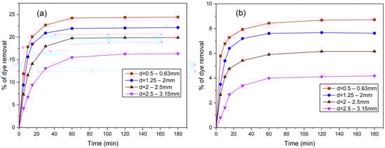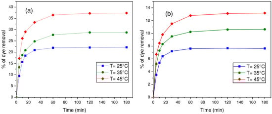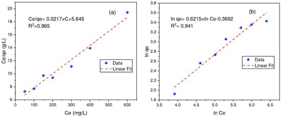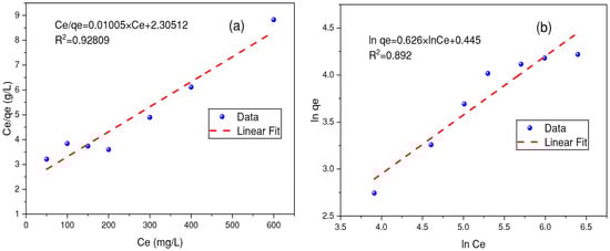 Enhancing the efficacy of dye removal from wastewater may require the implementation of supplementary treatment methodologies. Among these, adsorption is notable for its simplicity, effectiveness, and widespread application [,]. This approach has demonstrated efficiency and cost-effectiveness, especially for dye concentrations under 100 mg/L [,].