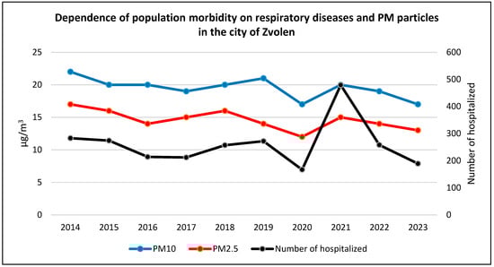 The findings of the research conducted in the city of Zvolen, compared with data from selected Slovak cities, demonstrate that although the measured PM concentrations formally did not exceed legal limits, they remain high when evaluated against the World Health Organization (WHO) guidelines. These results highlight a substantial gap between legal thresholds and actual health safety standards. PM concentrations vary significantly by location, depending on local conditions, the positioning of monitoring stations, and other contextual factors. Industrial areas and zones with heavy traffic loads show higher PM levels, which correspond with increased respiratory morbidity.