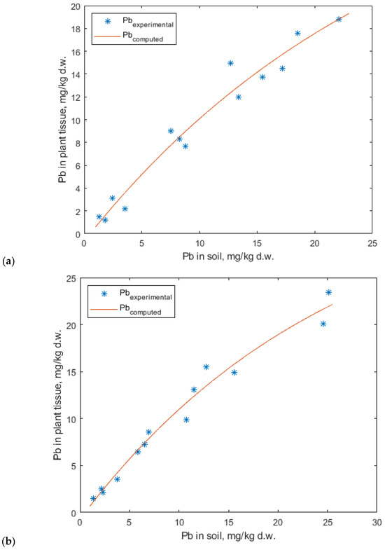 Empirical modeling further revealed that cadmium accumulation is best described by a linear model, whereas lead uptake aligns more closely with the Mitscherlich model. The modified Mitscherlich model, however, did not provide satisfactory fits for any of the tested data sets.