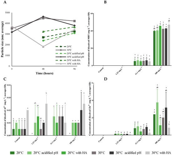 - Li, L.; Fernández-Cruz, M.L.; Connolly, M.; Schuster, M.; Navas, J.M. Dissolution and aggregation of Cu nanoparticles in culture media: Effects of incubation temperature and particles size. J. Nanopart. Res. 2015, 17, 1–11. [Google Scholar] [CrossRef]