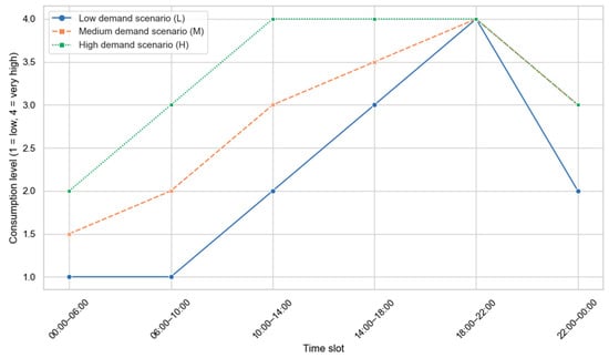 Hourly energy consumption profiles were also constructed for the three dwellings, using daily electricity consumption data to determine peak and off-peak hours. The validation was performed with residential consumption data extracted from the Open Energy Data Initiative (OEDI) platform, which provides representative information on residential energy consumption in areas similar to the study area [78]. Cross-validation was applied with data from the National Renewable Energy Laboratory (NREL) [79,80,81].