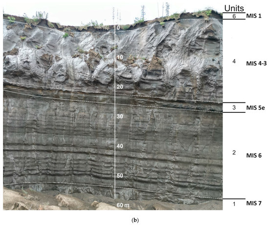Samples were collected from key stratigraphic units (MIS 5e, MIS 15–17) representing characteristic Ice Complex deposits; these deposits are well dated and are characteristic of Northeastern Siberia [11,15]. The samples of modern soils correspond to those that are developing in Northeastern Yakutia [20].