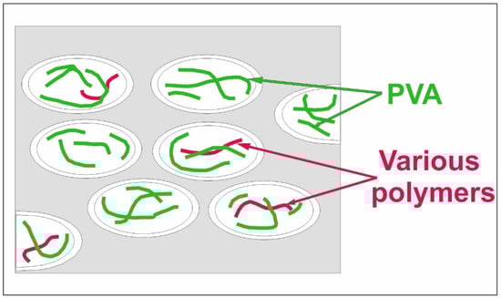 Inorganic particles added the right way, as described in the previous chapter, improve the strength of PVA, yet various polymers like β-cyclodextrin or other additives have been developed to increase adsorption capacities (Figure 6). Sharma et al. [35] created a β-cyclodextrin-PVA composite for dye removal using a multi-step process involving ultrasonication and crosslinking with citric acid. Shin et al. [36] improved mechanical strength by incorporating PEG and phosphate buffers into PVA-based media. Other researchers, such as Hou et al. [37], used cyclodextrin-modified polyacrylic acid for host-guest interactions, achieving high crosslinking densities.
