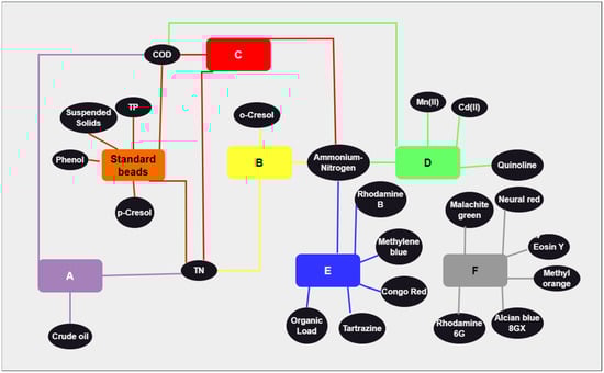 Our selection yielded a total of 34 articles (Figure 1) that specifically describe the fabrication and characterization of these materials. To organize the diverse approaches and modifications reported in these studies, we categorized the articles into seven distinct sections based on the production methods employed and the types of additives introduced into the PVA matrices. These types are named from A to F with the following categories in line: PVA-based foams (A), PVA beads with sodium alginate (B), PVA spheres via emulsification (C), PVA cubes with inorganic particles (D), PVA with other polymers (E), and PVA beads with graphene oxide (F). We made this categorization for all types of PVA-based carriers that are applicable in wastewater treatment that we found in various articles. This structured framework allows us to clearly compare and contrast the various strategies and to understand how different processing conditions and incorporated materials influence the properties of the resulting systems.