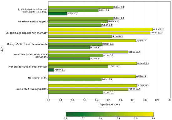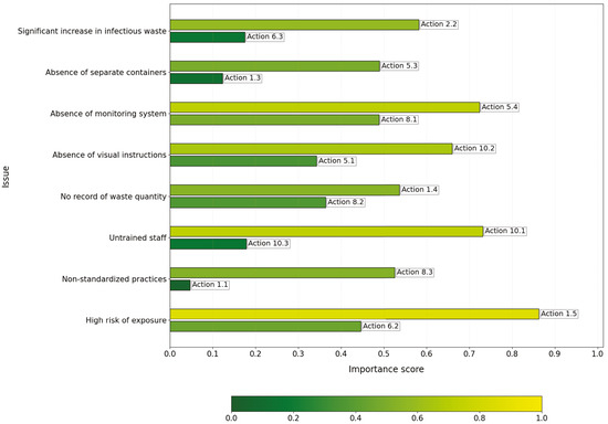 Figure 3. Overview of issues, recommended actions, and importance values in Case Study no. 1.