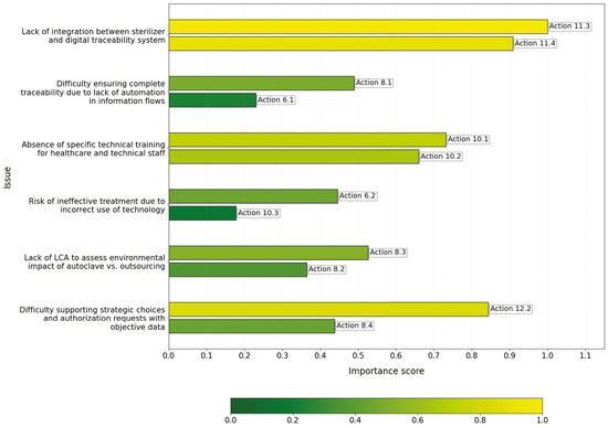 Figure 5. Overview of issues, recommended actions, and importance values in Case Study no. 3.