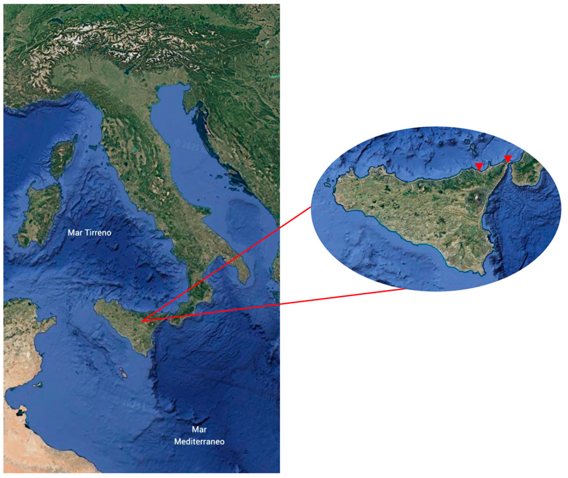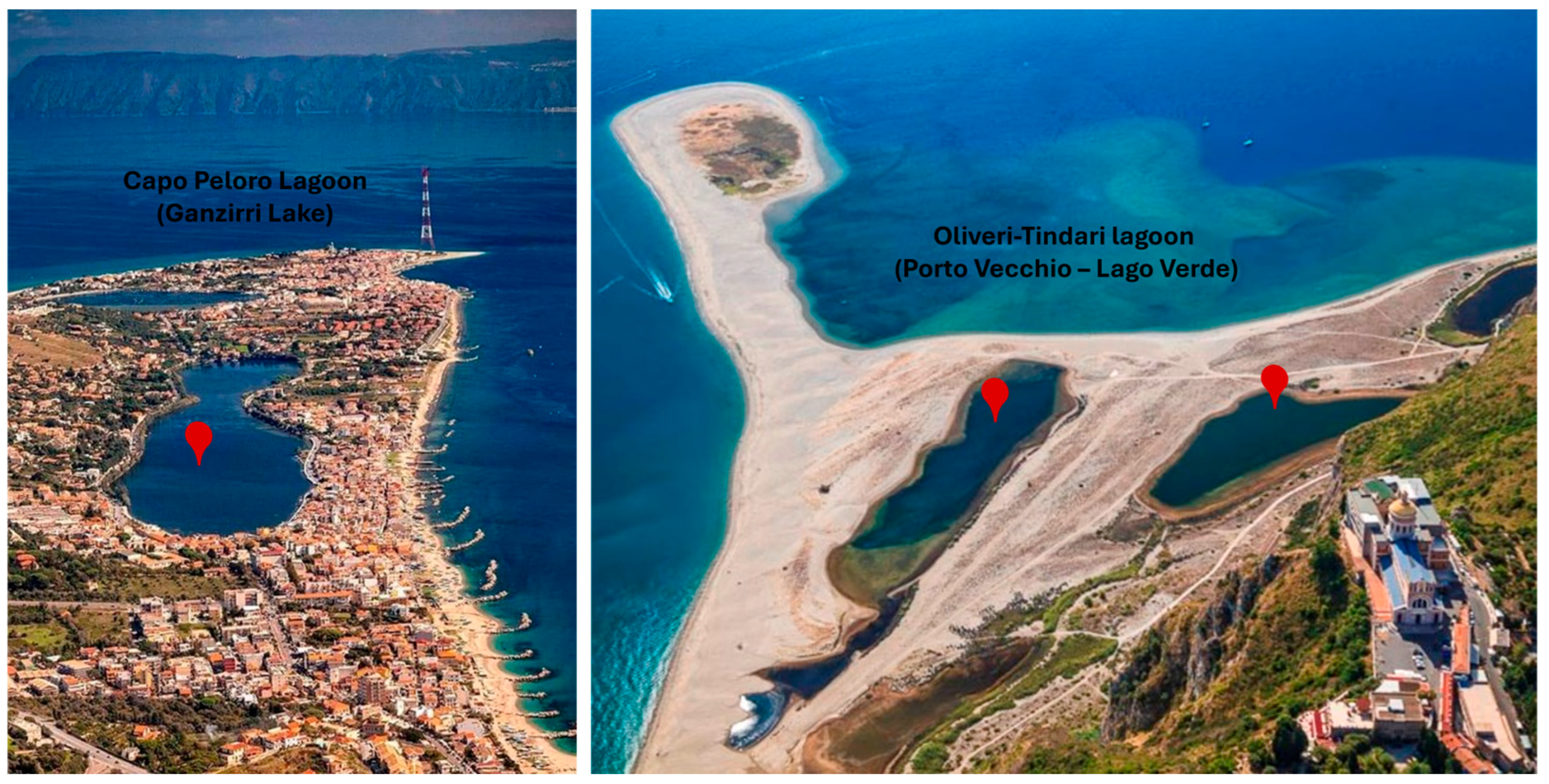 - Sanfilippo, M.; Albano, M.; Manganaro, A.; Capillo, G.; Spanò, N.; Savoca, S. Spatiotemporal Organic Carbon Distribution in the Capo Peloro Lagoon (Sicily Italy) in Relation to Environmentally Sustainable Approaches. Water 2022, 14, 108. [Google Scholar] [CrossRef]