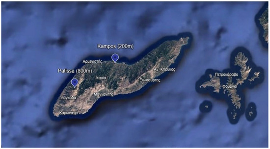 The vineyards are currently utilized for commercial application, and they are located in the northern part of Ikaria Island (37.5967° N, 26.1123° E), in the eastern Aegean Sea region of Greece (Figure 2).