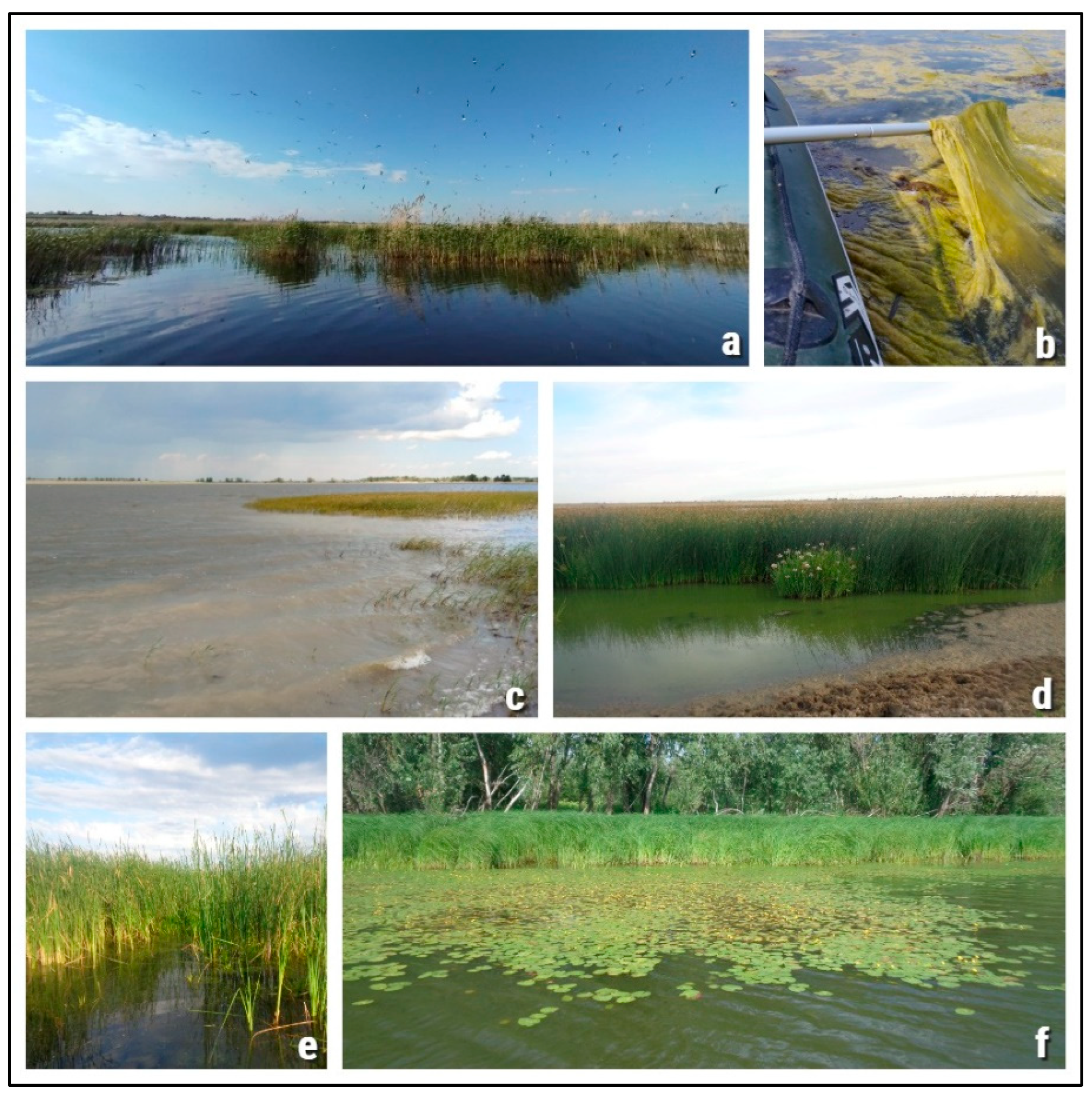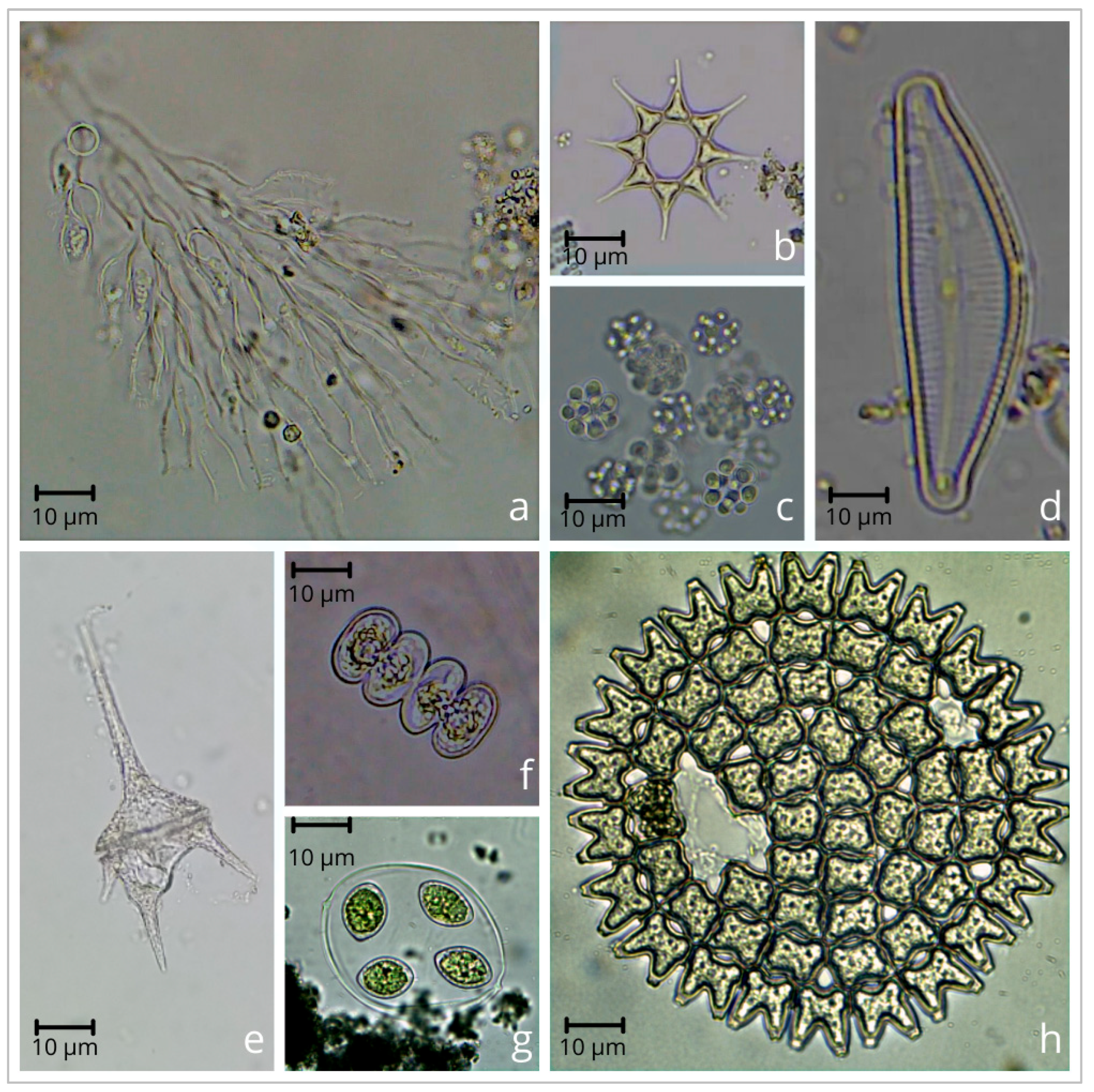 - Krivina, E.S.; Tarasova, N.G. Phytoplankton of an urbanized reservoir (on the example of Lake Vosmerka, Tolyatti, Samara Region). II. Quantitative development, dominant species and water quality assessment. Bull. Samara Sci. Cent. Russ. Acad. Sci. 2015, 17, 203–209. [Google Scholar]
