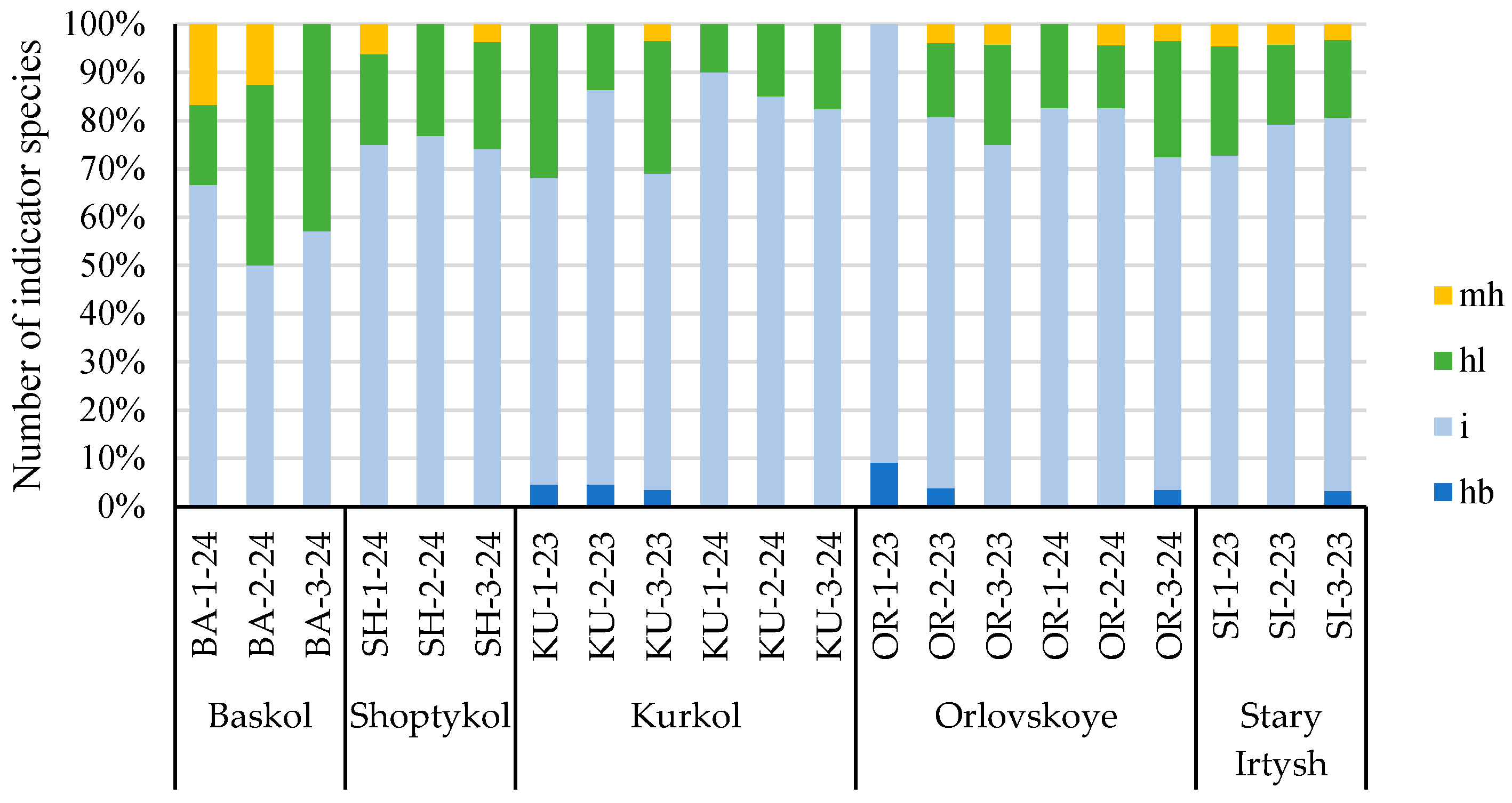 Stary Irtysh | 2023 | 36.3 ± 1.2 | 3.86 ± 0.09 | 3.11 ± 0.13 | 0.68 ± 0.09 |