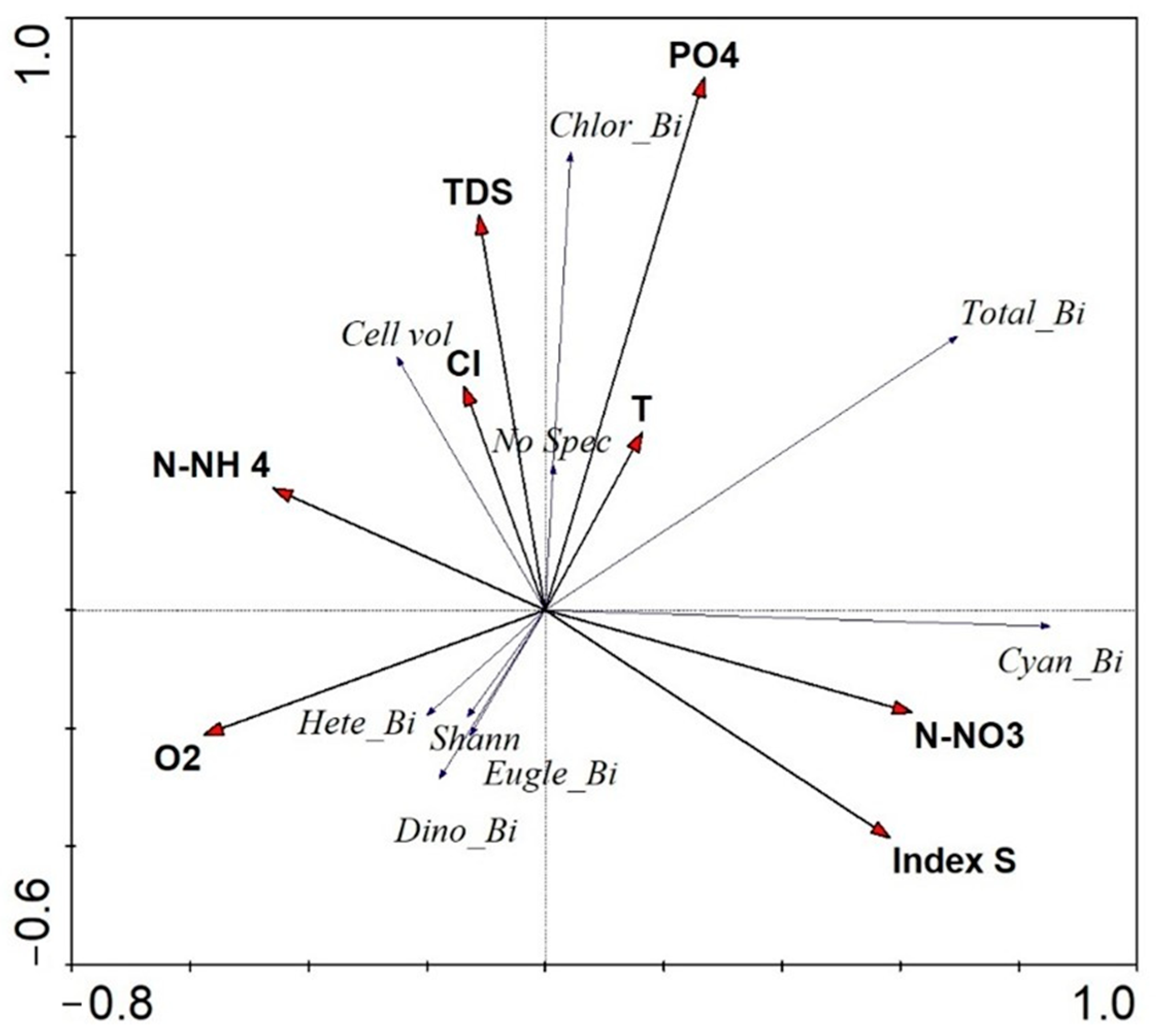 4.3. Assessment of the Ecological State of Floodplain Lakes by Phytoplankton and Chemical Variables