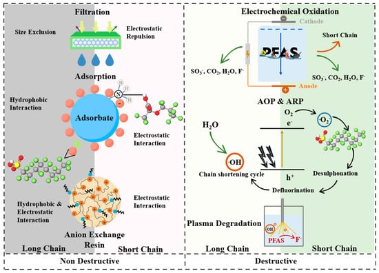 - Jiang, X.; Zhou, Z.; Wang, D.; Liu, G.; Wang, W.; Mu, S.; Yu, G.; Deng, S. Pilot-scale removal of PFAS from chromium-plating wastewater by anion exchange resin and activated carbon: Adsorption difference between PFOS and 6: 2 fluorotelomer sulfonate. Chem. Eng. J. 2024, 481, 148569. [Google Scholar] [CrossRef]