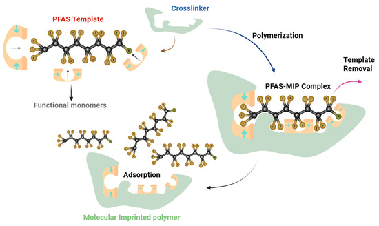 | Magnetic-MIP-PFOS | Acrylamide + Fe3O4@SiO2NPs | PFOS | Ethylene glycol dimethacrylate (EGDMA) | 0.1–0.7 | 2.401 | Hydrophobic, Electrostatic Interaction, and Hydrogen Bonding | [143] |