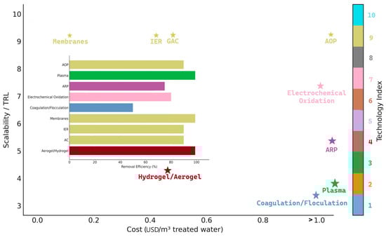 | Technology | Removal Efficiency | Cost | Scalability | Limitations | References | |