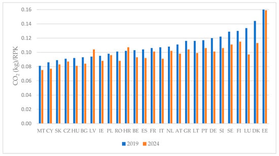The methodology explained in Section 2 was applied to the data compiled from EUROCONTROL and Eurostat for 2019 and 2024. Comprehensive data can be found in the tables located in Appendix A.
