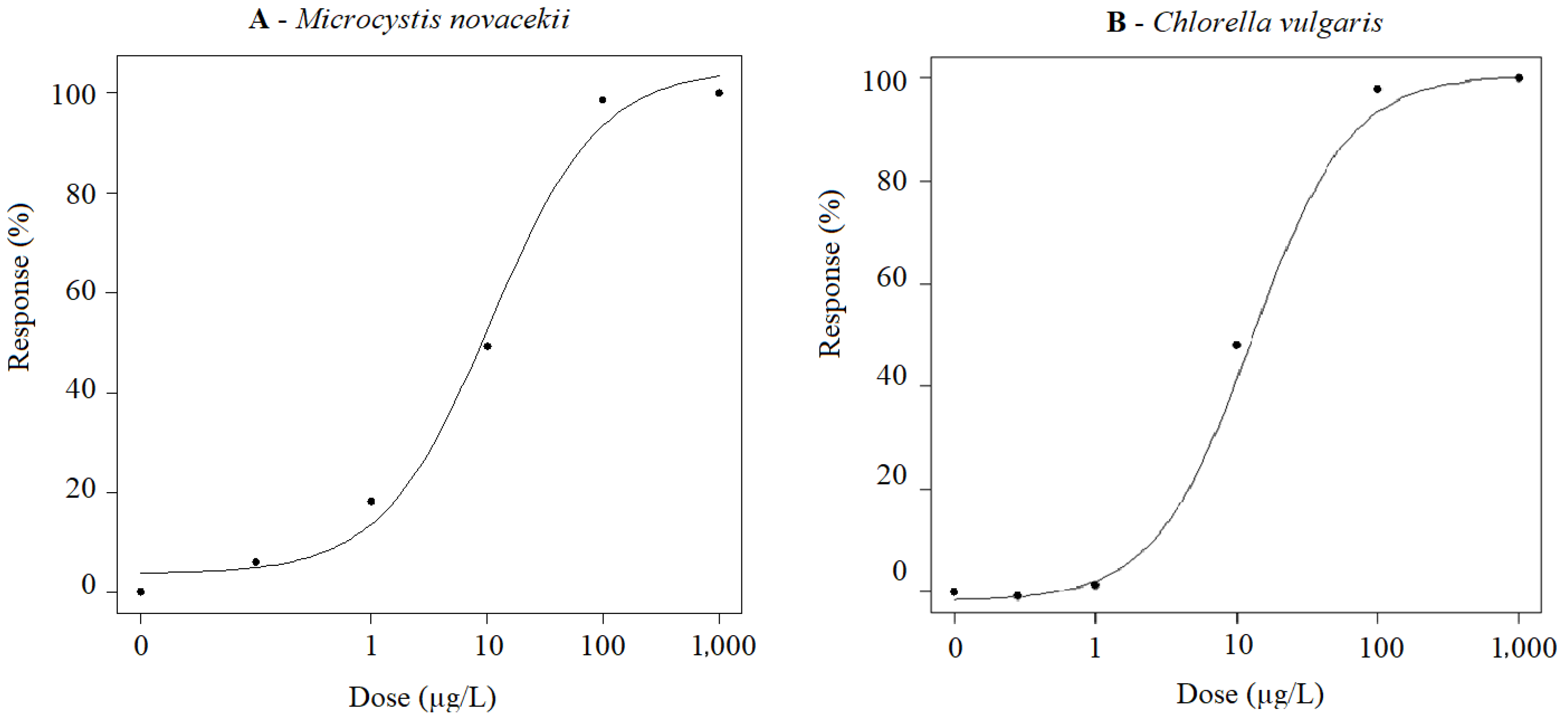 2.5. Microcystis novacekii and Chlorella vulgaris Recovery Assay