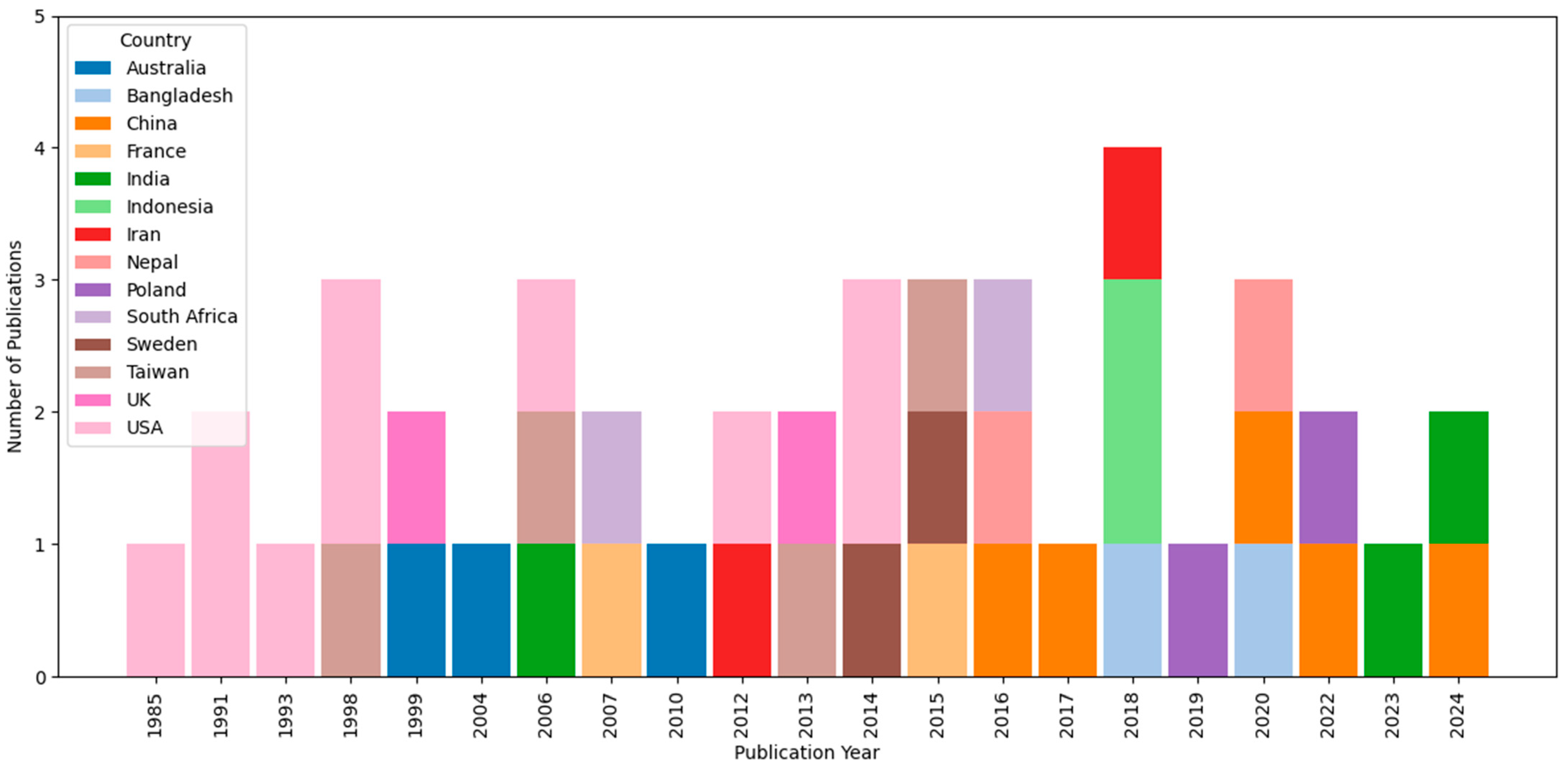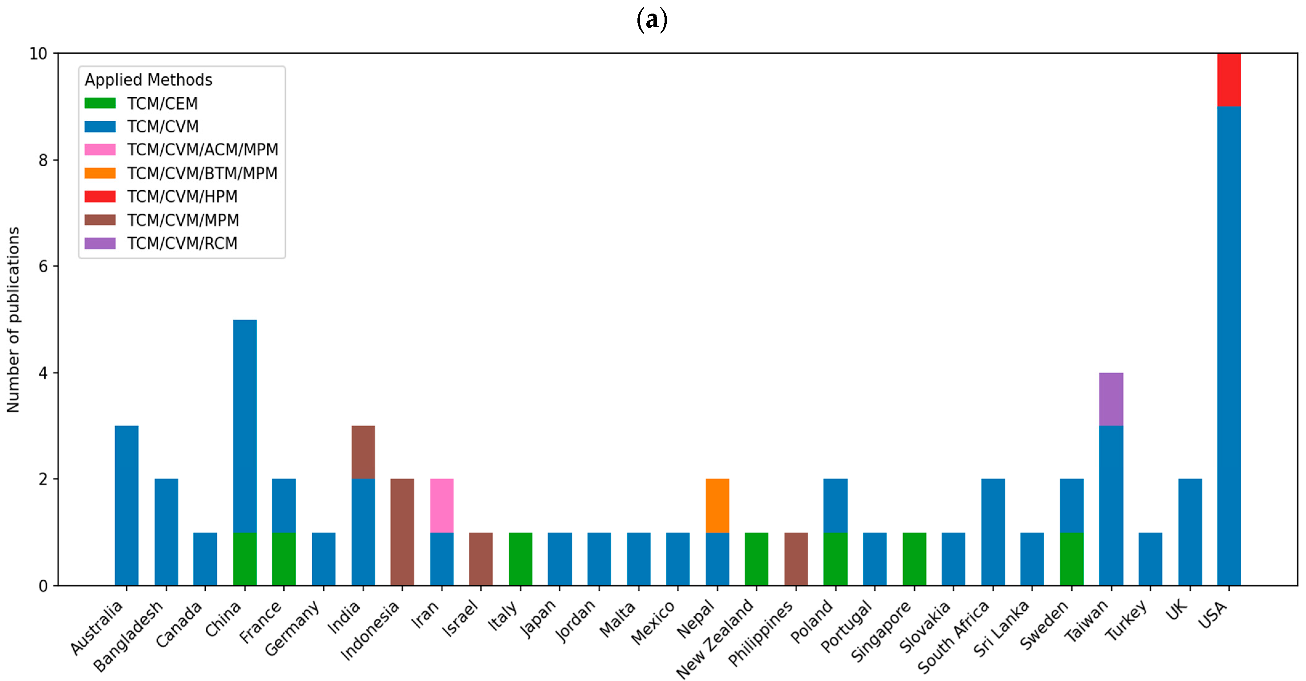 4.2. Evolution of Countries That Applied the Travel Cost Method Alongside Other Valuation Methods over the Years