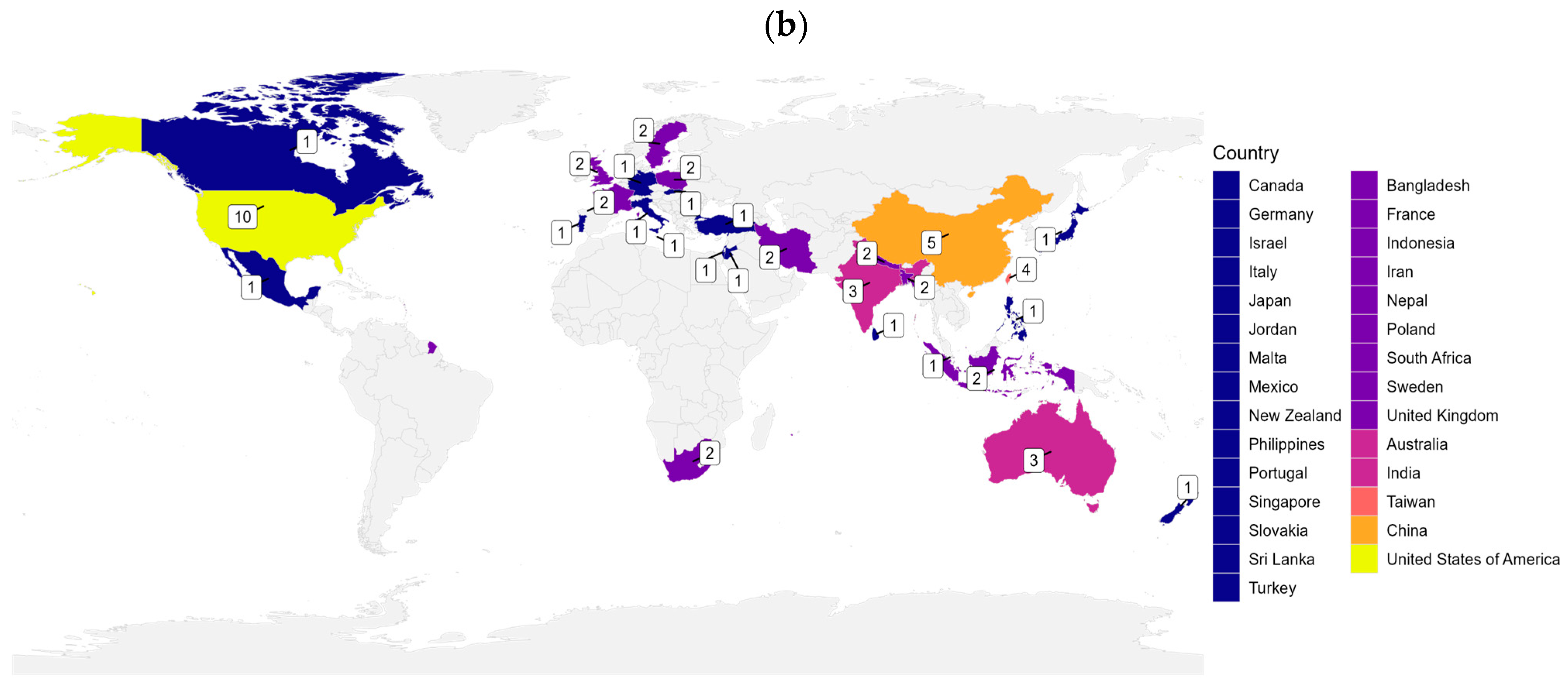 4.1. Geographic Distribution of Studies According to the Combined Methods Applied