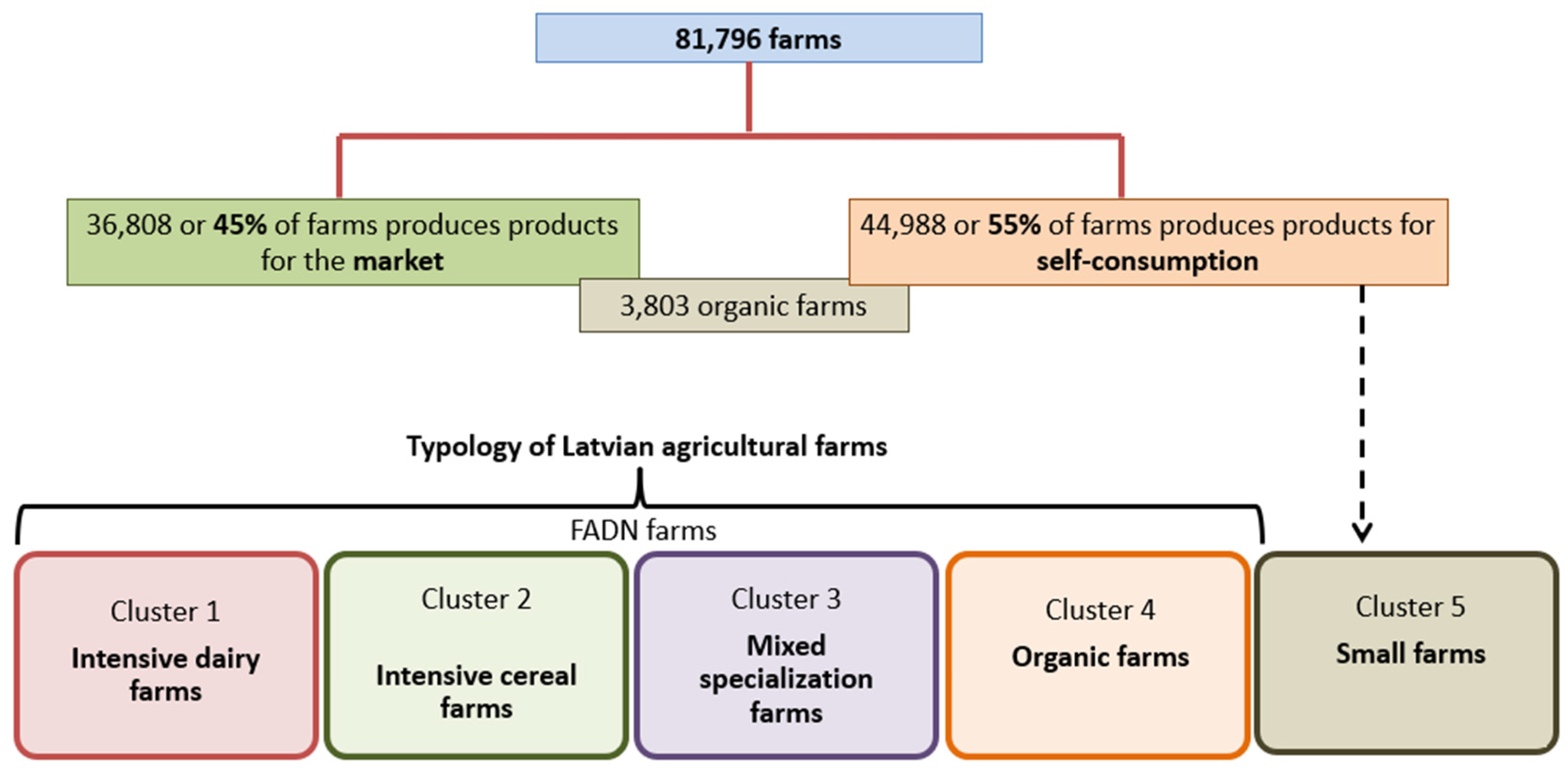 - Naglis-Liepa, K.; Popluga, D.; Rivža, P. Typology of Latvian Agricultural Farms in the Context of Mitigation of Agricultural GHG Emissions. In Proceedings of the 15th International Multidisciplinary Scientific Geoconference SGEM 2015 “Ecology, Economics, Education and Legislation”, Albena, Bulgaria, 18–24 June 2015; Volume II, pp. 513–520. [Google Scholar]