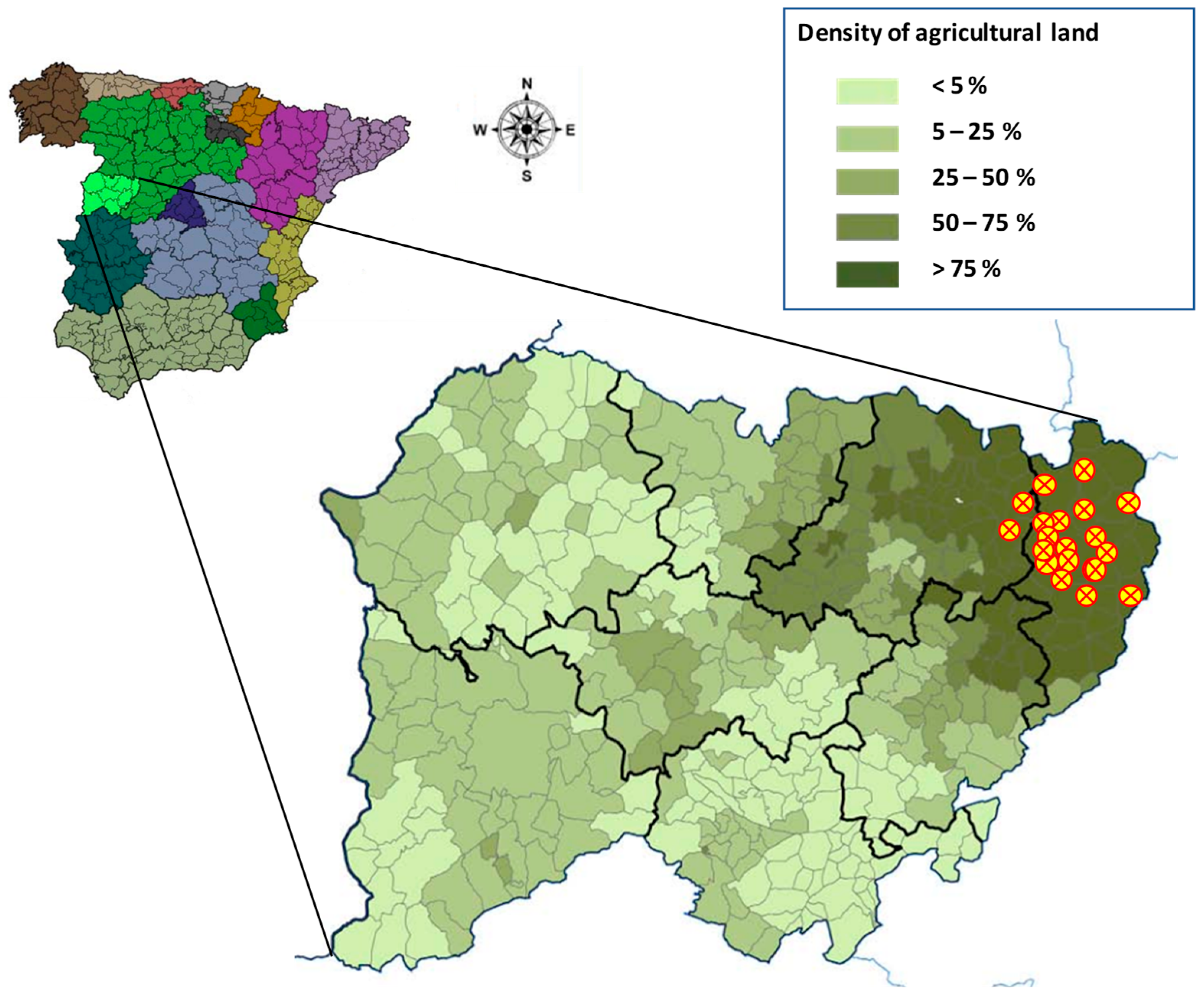 - Scherer, L.A.; Verburg, P.H.; Schulp, C.J.E. Opportunities for sustainable intensification in European agriculture. Glob. Environ. Change 2018, 48, 43–55. [Google Scholar]