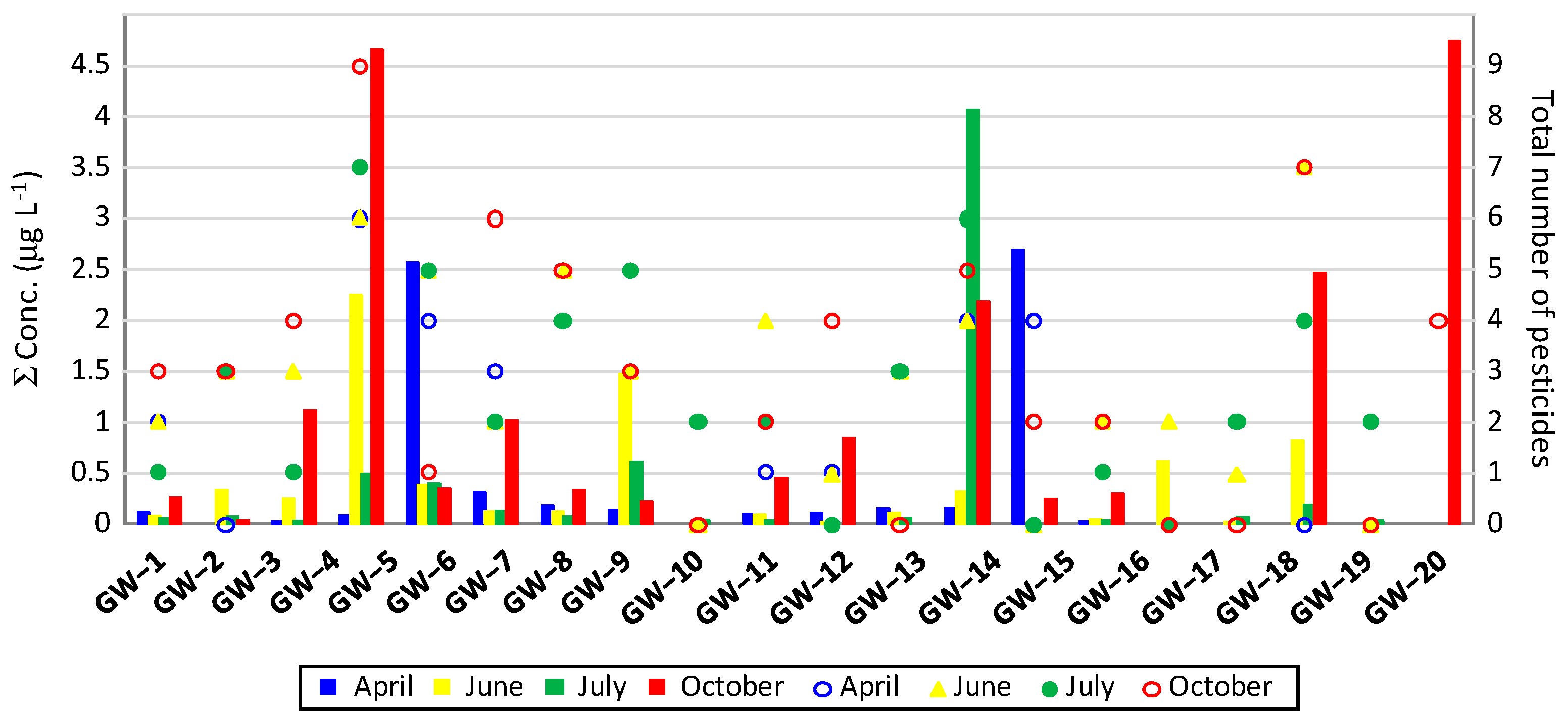 | Pesticide | April | June | July | October | ||||||||||||