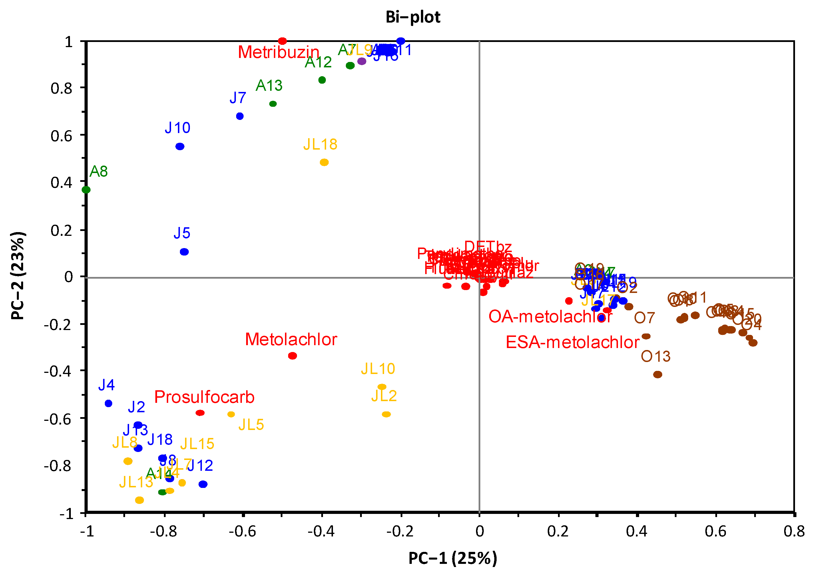 | OA-metolachlor | 0.015 | - | - | - | 179.6 | 16.6 | - | - | - | 0.1623 | 100 | - | - | - | 0.2690 |