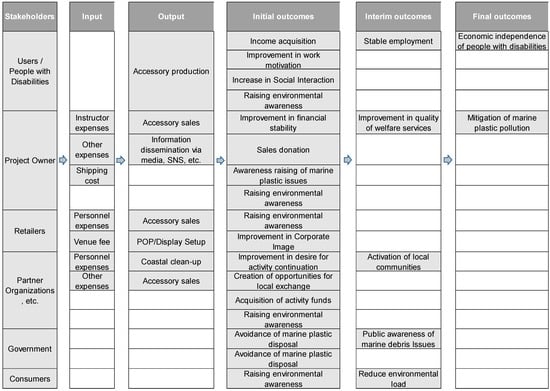 The evaluation of corporate social activities has gained momentum, particularly accelerated since the adoption of the United Nations Sustainable Development Goals (SDGs) in 2015. Several frameworks have emerged to quantify social impacts beyond traditional financial metrics [26,27]. There are several corporate case studies that focus on environmental effects and visualize the value generated. For instance, AMITA Corporation’s “MEGURU STATION” project, which operates resource circulation hubs across Japan, has employed social impact assessment methodologies to measure benefits including CO2 emission reductions, community engagement, and educational outcomes [28]. Similarly, Mercari, Japan’s leading online marketplace platform, has quantified the environmental and social value generated through product reuse, estimating annual CO2 reductions and economic benefits to users [29]. Recent research on upcycling agricultural waste into value-added biopolymers has further demonstrated that low-volume, low-tech upcycling of waste materials can generate environmental and social value beyond conventional recycling pathways [30]. However, despite growing interest in upcycling as a waste management strategy that creates products of higher quality or value than the original materials, social impact evaluations of upcycling initiatives remain scarce in academic literature. A recent systematic review of circular economy practices further indicates that social value generated through day-to-day business operations is substantially under-researched [31]. Prior studies on social enterprises further emphasize that small-scale, community-based initiatives may generate disproportionate social value relative to their economic scale, particularly in terms of social inclusion, well-being, and community engagement [32,33]. In particular, some small-scale, community-based projects that integrate social welfare objectives may generate disproportionate social returns, yet they often lack the resources or frameworks to systematically document their impacts. For example, Sridan et al. [34] conducted a Social Return on Investment (SROI) analysis of a community-based waste bank initiative in Thailand that captured economic, environmental, and social benefits under a circular economy framework and reported a positive return (SROI = 2.65).