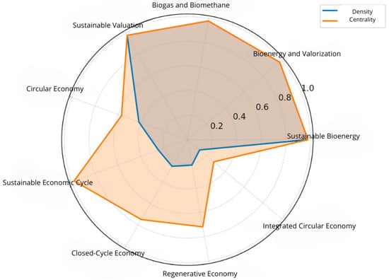 The ways in which the identified themes interact have implications for the intellectual trajectory of the field. The driving themes of bioenergy and valorization are highly coherent with each other, but have low connectivity with broader conceptualizations of circular economy, which may indicate disciplinary silos in which waste-to-energy research develops independently of systemic circularity frameworks. In contrast, elementary notions such as “circular economy” or “sustainable economic cycle” serve as conceptual links between specific lines of research, but their sparse density reveals that a theoretical development capable of providing robust integrative frameworks has not yet been achieved. The marginality of the “Integrated Circular Economy” is a point to highlight as a foretaste of future lines of research. Its low density and centrality may be a reflection of its recent emergence or its conceptual vagueness, but its integration-oriented nature is in tune with the recognition that effective circular transitions need to consider environmental, economic, social and governance dimensions simultaneously (